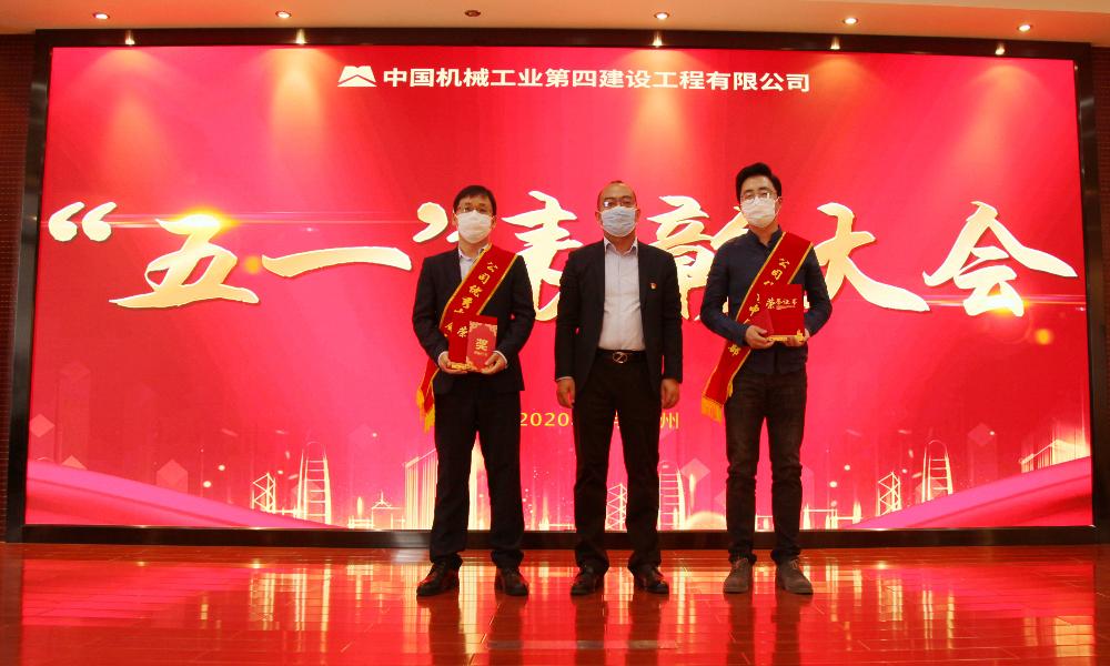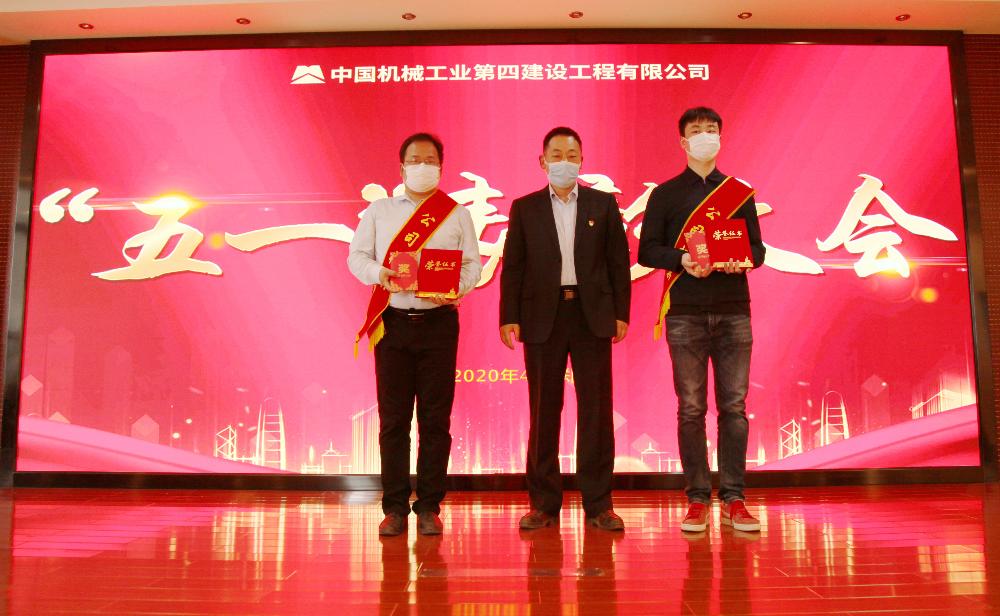 副总经理张继宣为先进工作者崔军阔(左)、左朝阳(右)颁奖