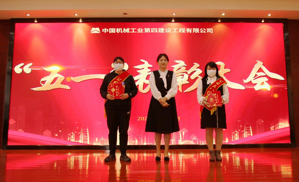 财务总监孙晓雯为三八红旗手李亚君(左)、李书娟(右)颁奖
