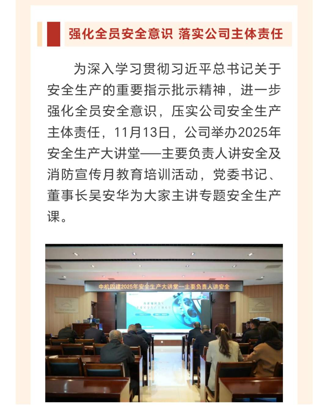 强化全员安全意识 落实公司主体责任——公司举办2025年安全生产大讲堂及消防宣传月教育培训活动