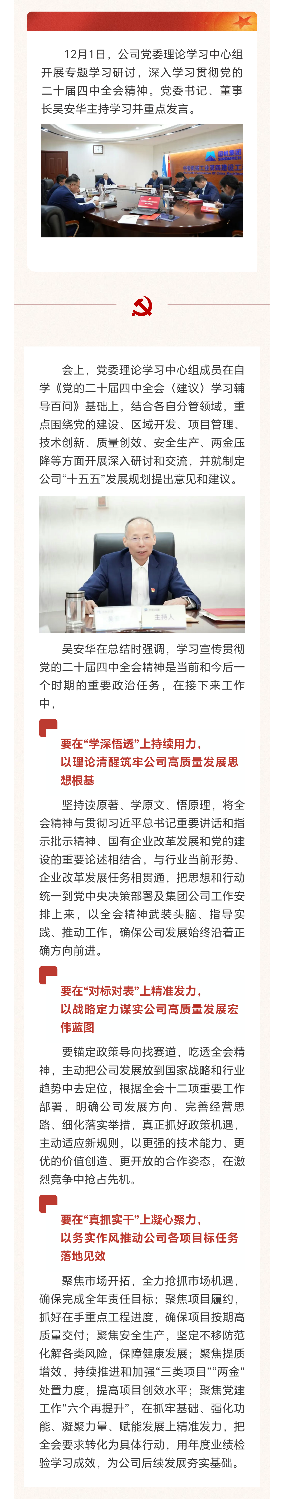 公司党委理论学习中心组专题学习党的二十届四中全会精神