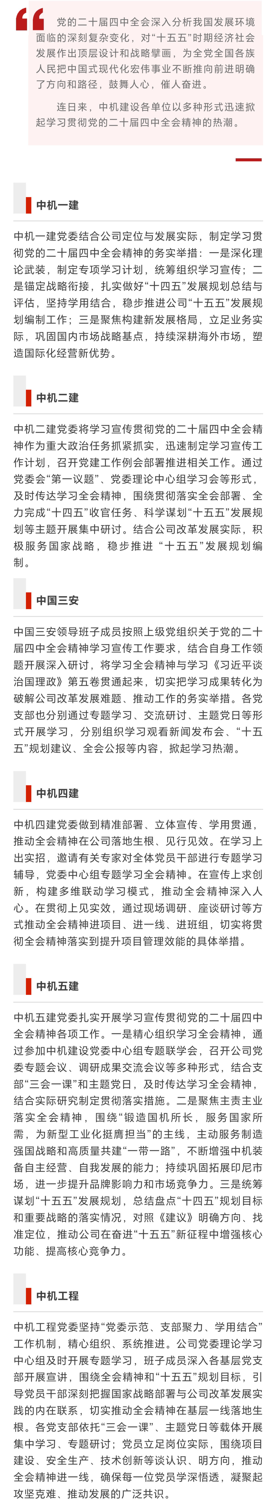 凝心铸魂强信念 中机建设掀起学习贯彻党的二十届四中全会精神热潮(一)