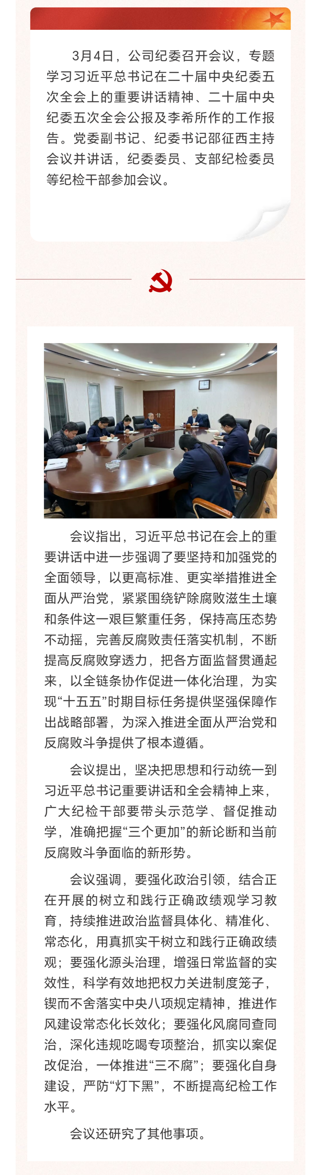 公司纪委集体学习二十届中央纪委五次全会精神
