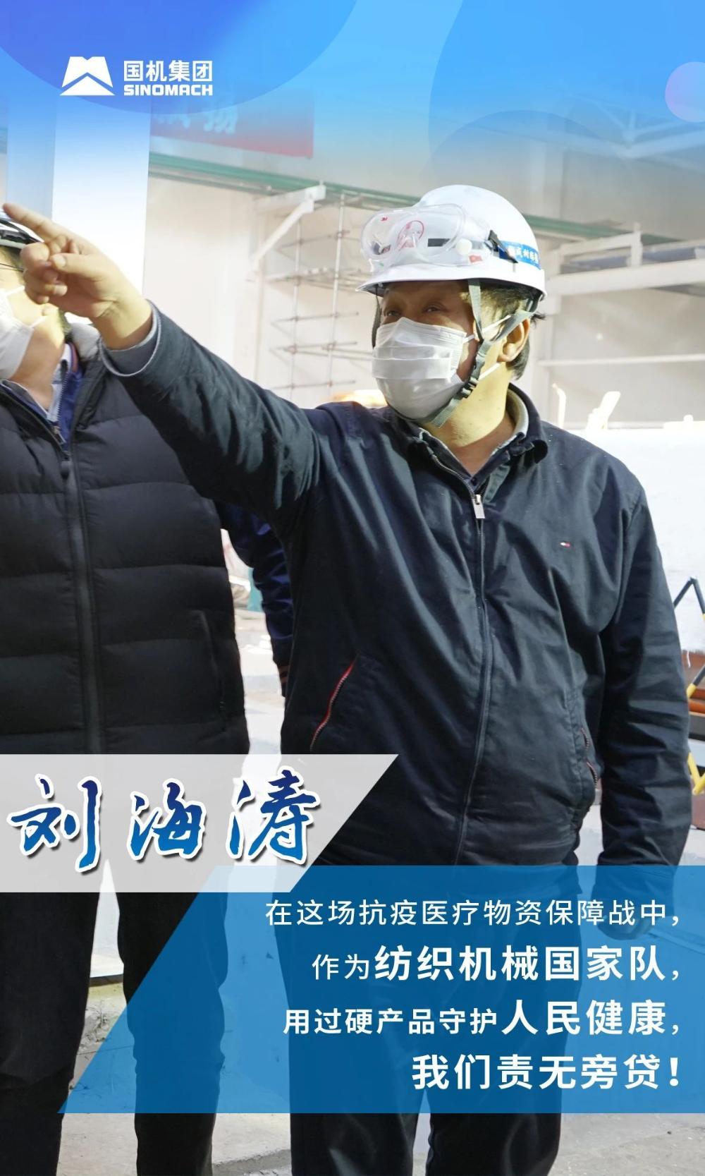 在国机集团的统一部署下,刘海涛带领中国恒天迅速行动,勇担使命,强力推进医疗物资生产和医用防护材料装备攻关保供。
