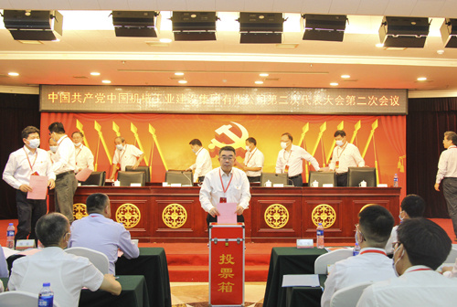 与会代表以无记名投票方式,选举产生了徐衍林等八名中国共产党中国机械工业集团有限公司第二次代表大会代表,增补选举黄建洲同志为中国机械工业建设集团有限公司党委委员。