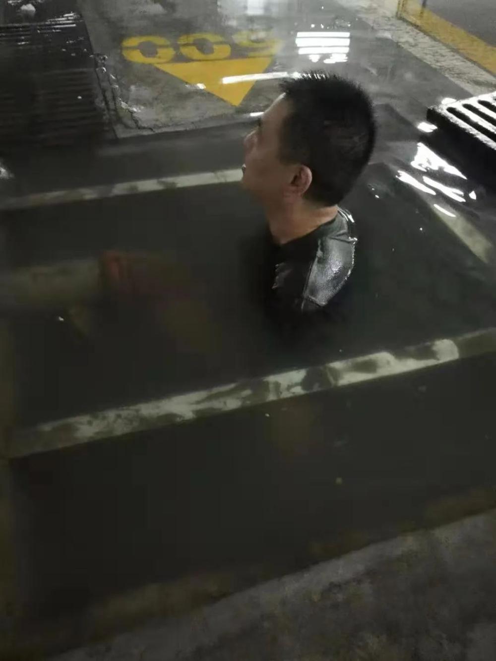 面对排水管道堵塞造成地下停车场严重积水的紧急情况,入党积极分子、中机工程综合管理部职工张海伟纵身跳入满是污水的管道口,寻找排水阀门,大家彻夜忙碌,展现出了中机建设“敢于担当、甘于奉献”的执行文化,将暴雨对办公楼造成的损失降到最低。