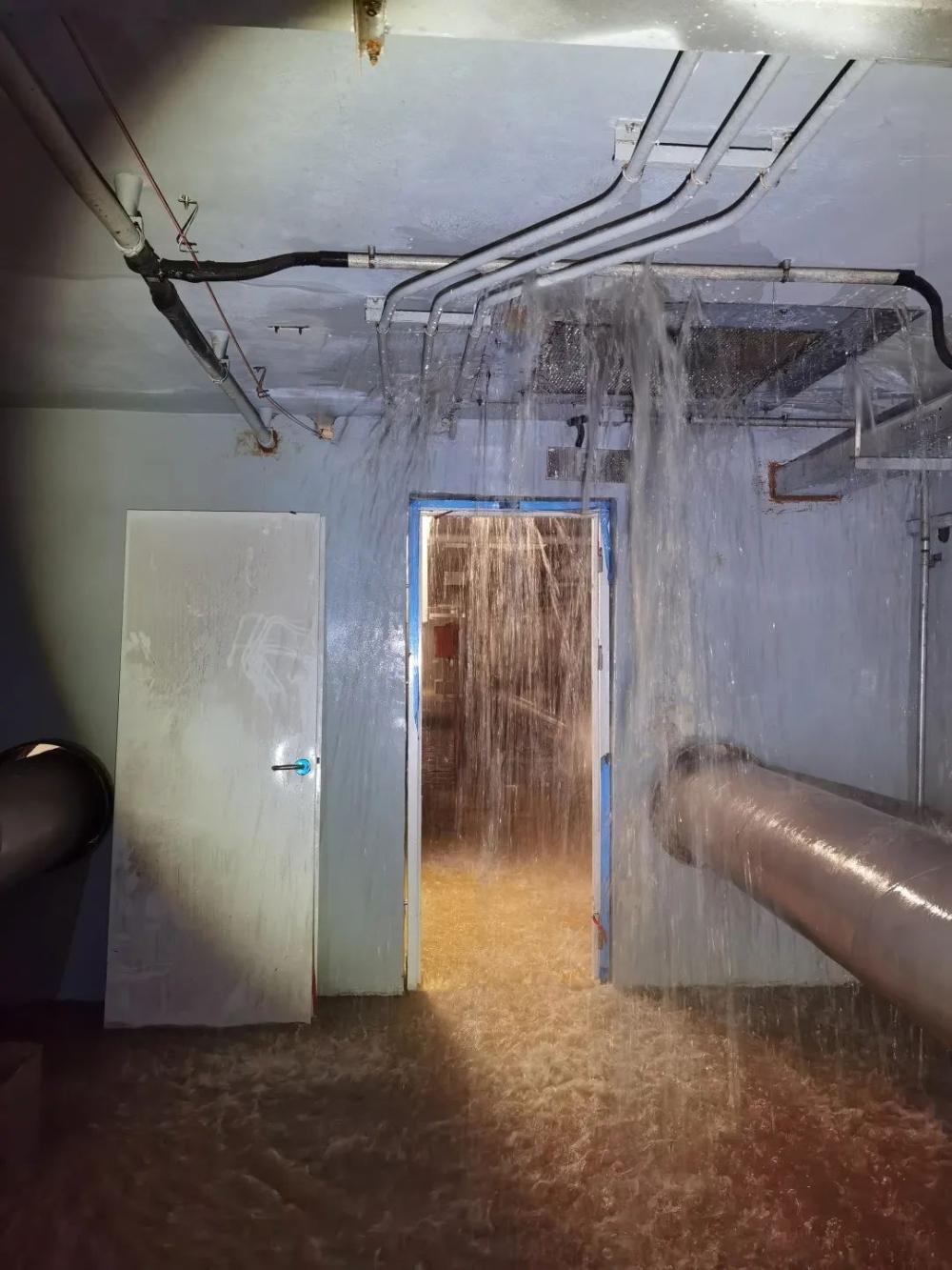 中机工程办公区域积水严重,地上停车场外墙出现坍塌,个别车辆进水、熄火。监控室、裙楼 2 层进水被淹严重,职工餐厅、地下停车场和办公楼 3 层、16 层、17 层出现不同程度漏水。