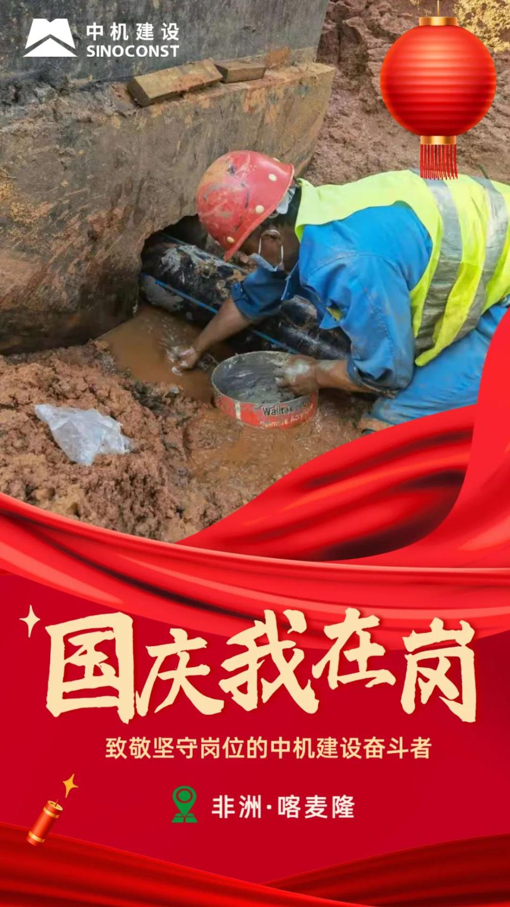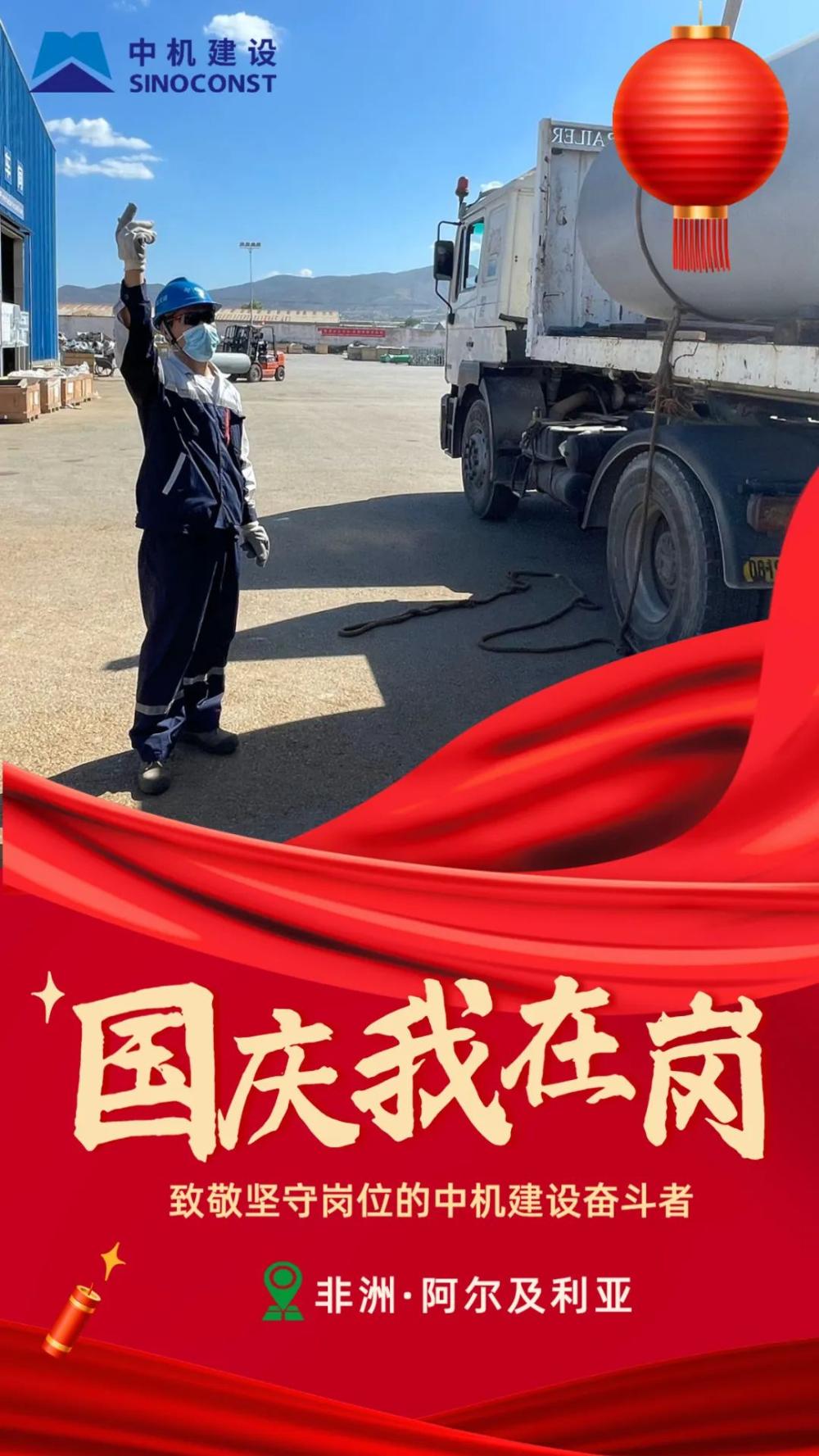 虽然远在非洲,但我们始终怀揣着一份家国情怀。机器在不停运转,材料在紧张倒运,设备在陆续就位,我有条不紊地指挥着起重工作,以细心严谨向祖国母亲生日献礼。